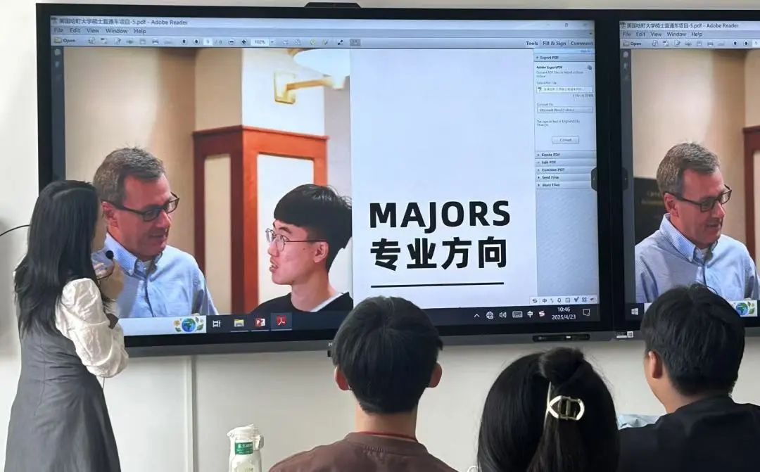 计算机学院于2025 年4 月23 日在2024 级软件工程二班举行了留学宣讲会,曾凌老师为同学们介绍了美国哈町大学,跟同学们一起探讨了留学规划,介绍了语言的要求,并介绍了雅思听说读写考试内容与考核方式。