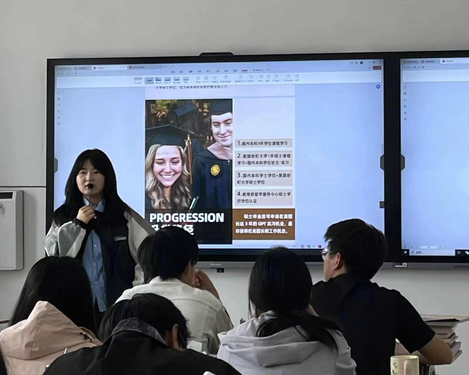 计算机学院于2025年4月28日为2024级物联网工程班举办留学专题宣讲会。邢淼老师重点推介了美国哈町大学留学项目,通过分析海外深造路径、解析语言能力要求,特别是针对雅思考试的听说读写四大模块进行了考纲解读与应试策略指导。
